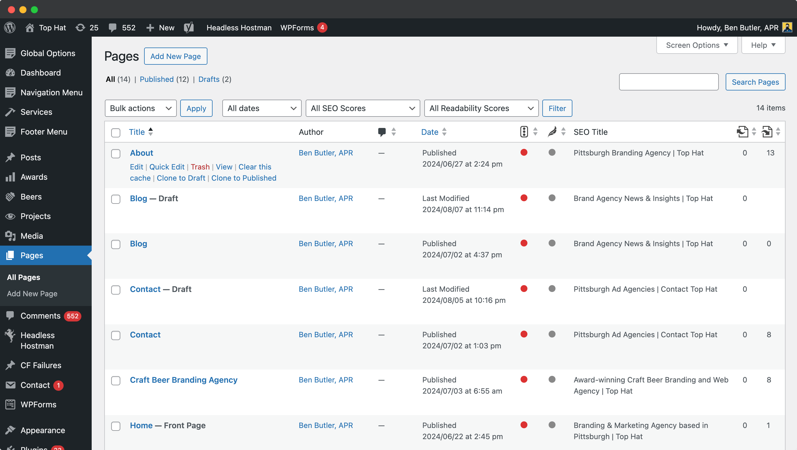 add_filter('page_row_actions', 'hh_add_clone_link', 10, 2);