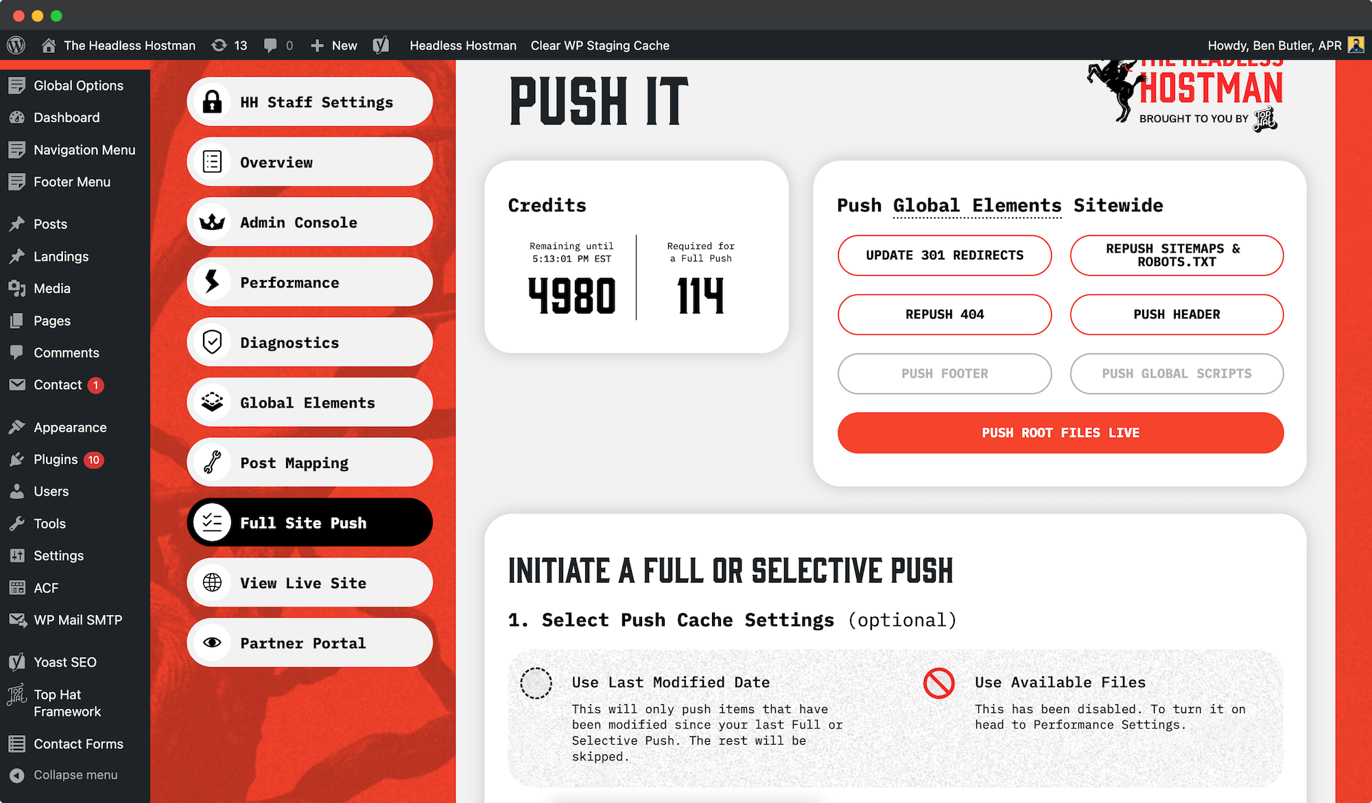 Once this option is toggled on, and files are selected, the “Push Root Files Live” button will be illuminated and available to use.