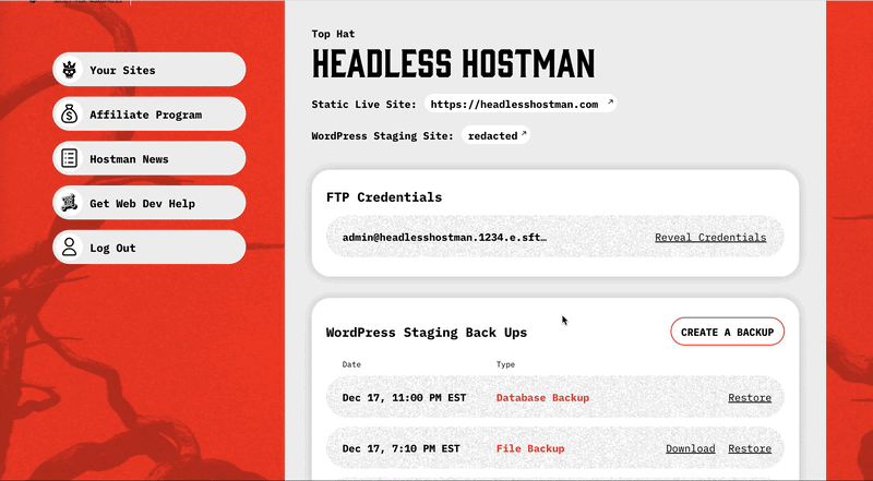 The Headless Hostman has multiple methods in place to secure your site’s data: