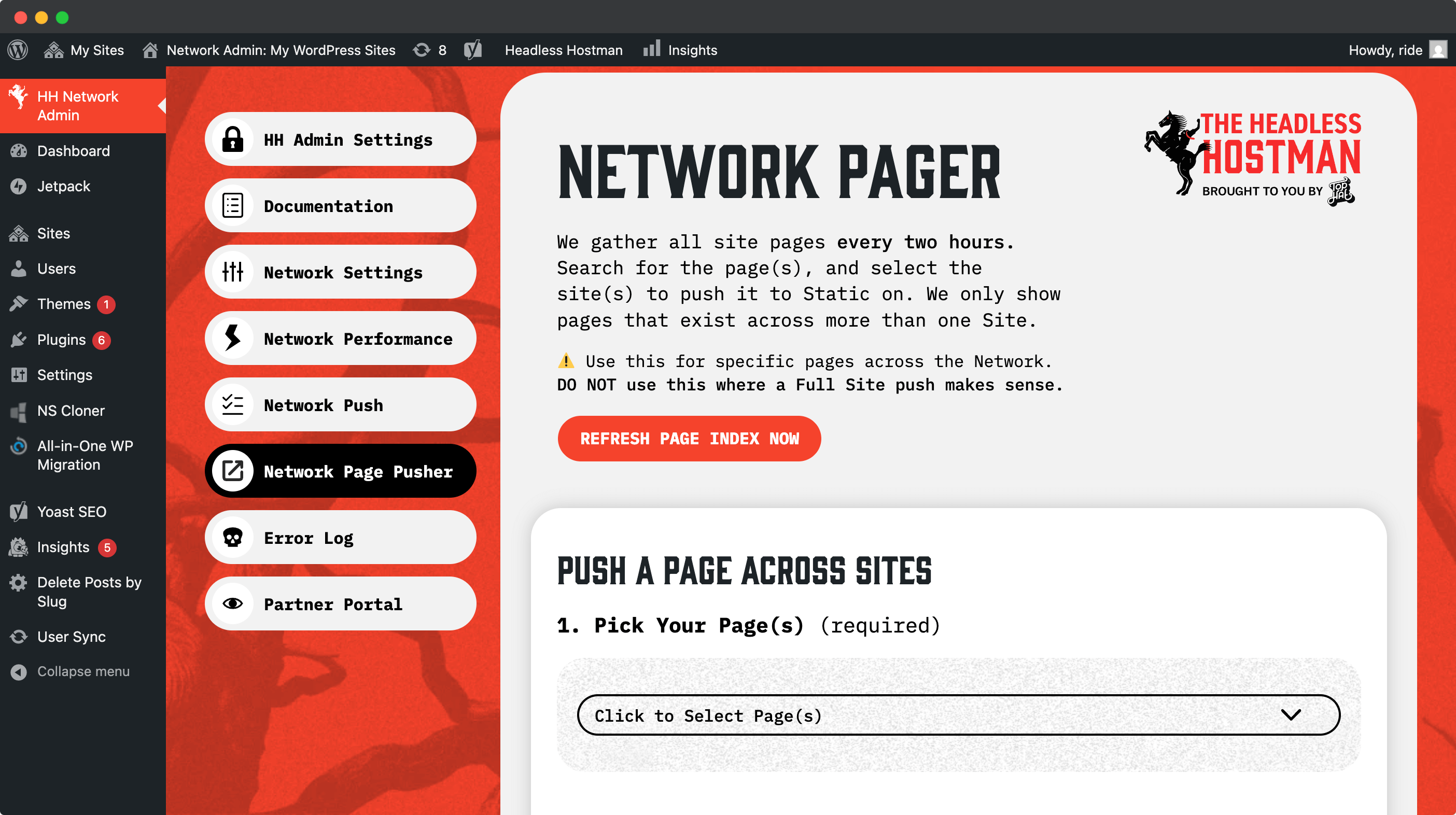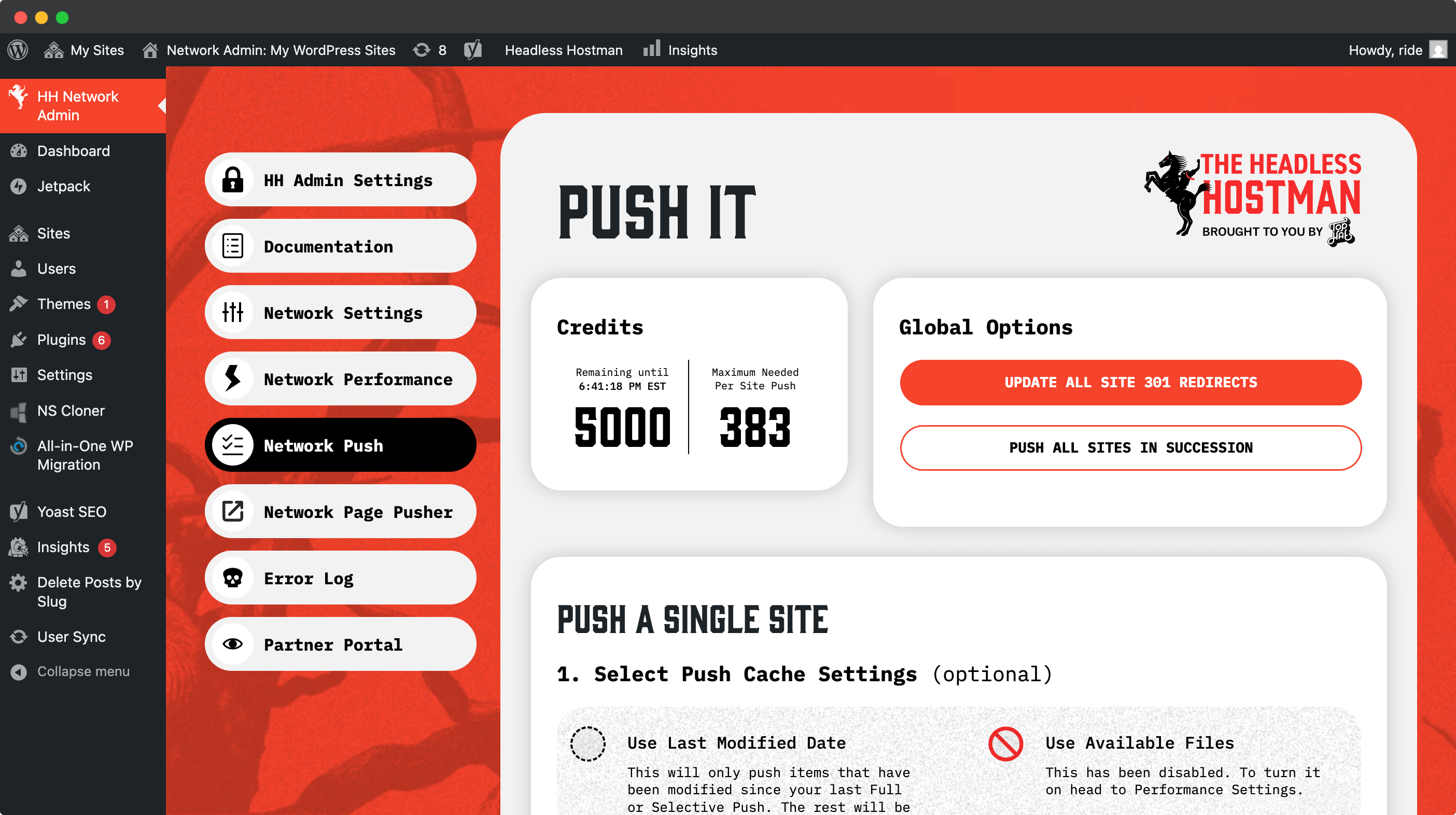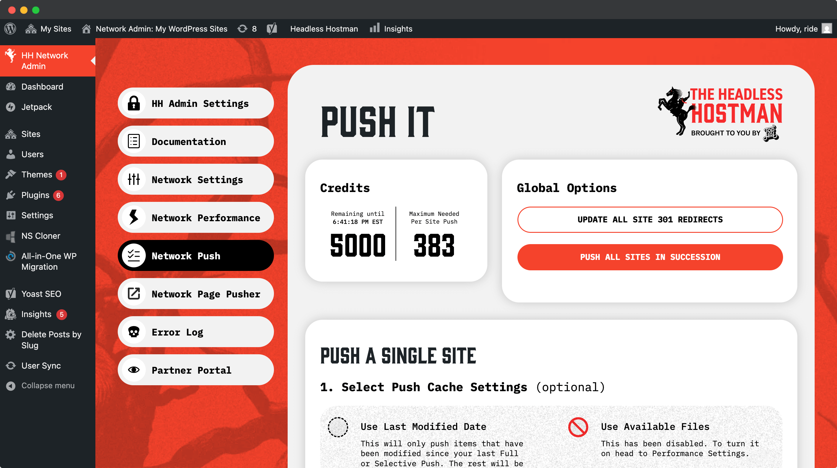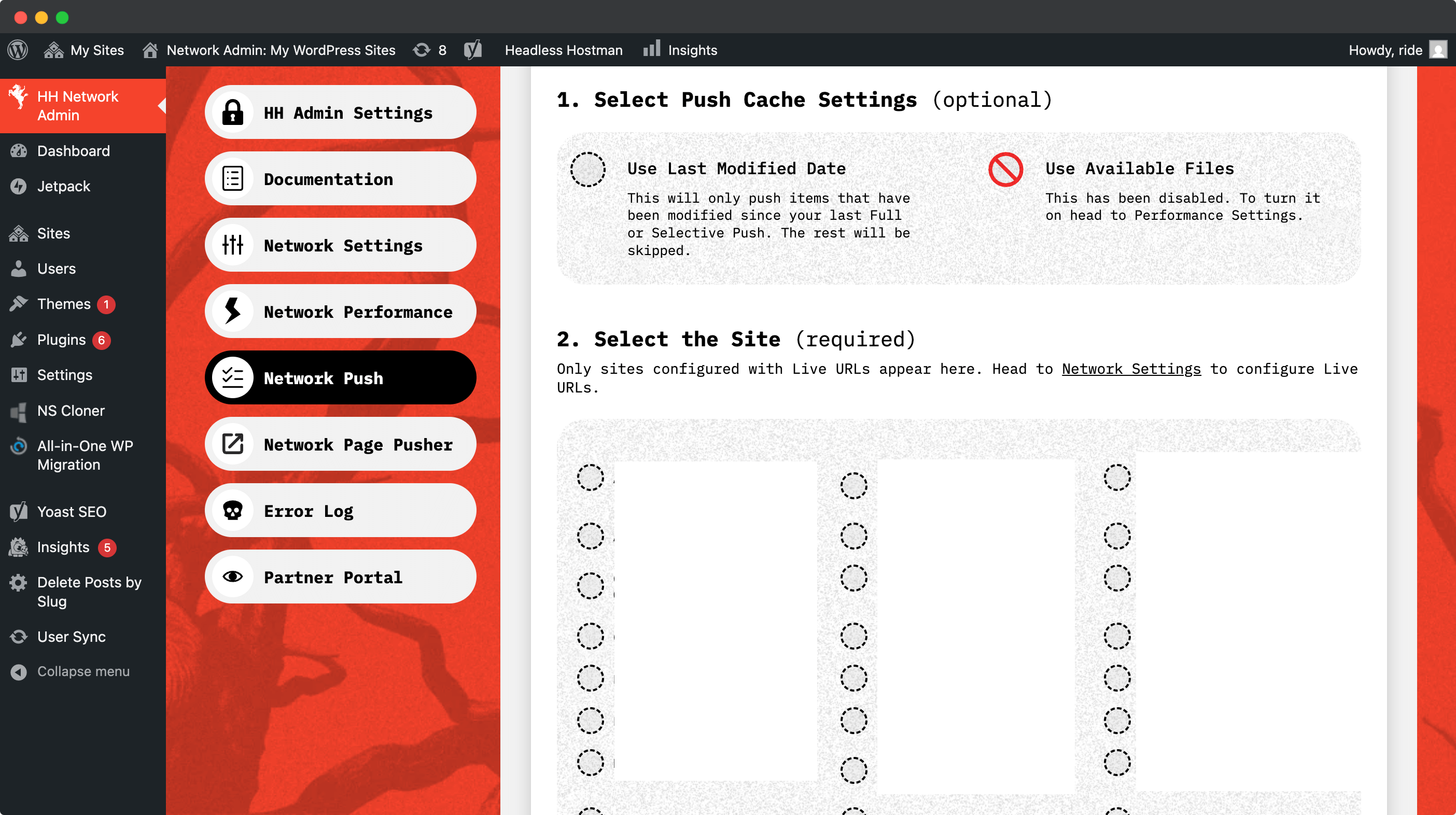 The Network Push option allows you to push a particular site without any other clicks.