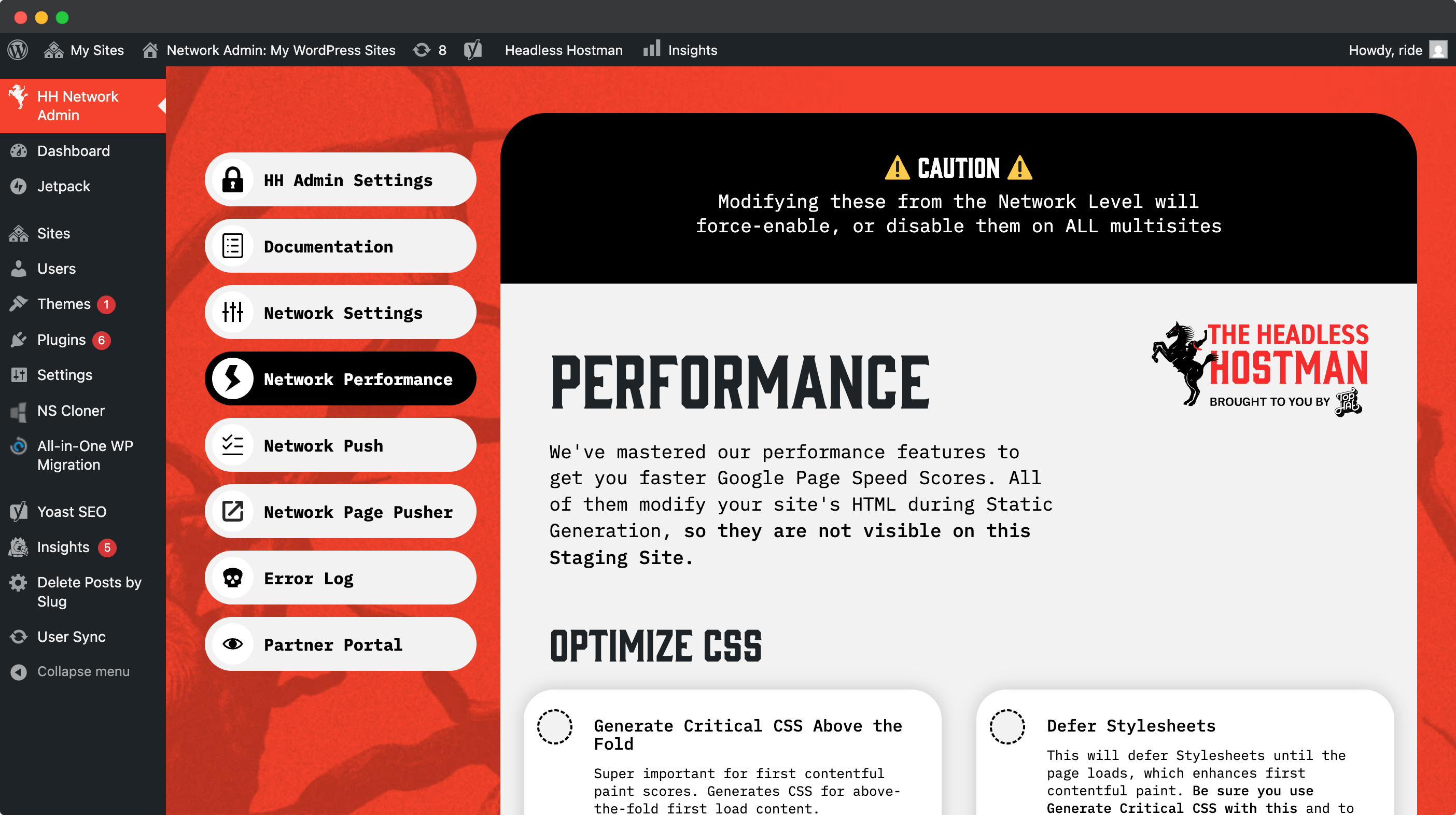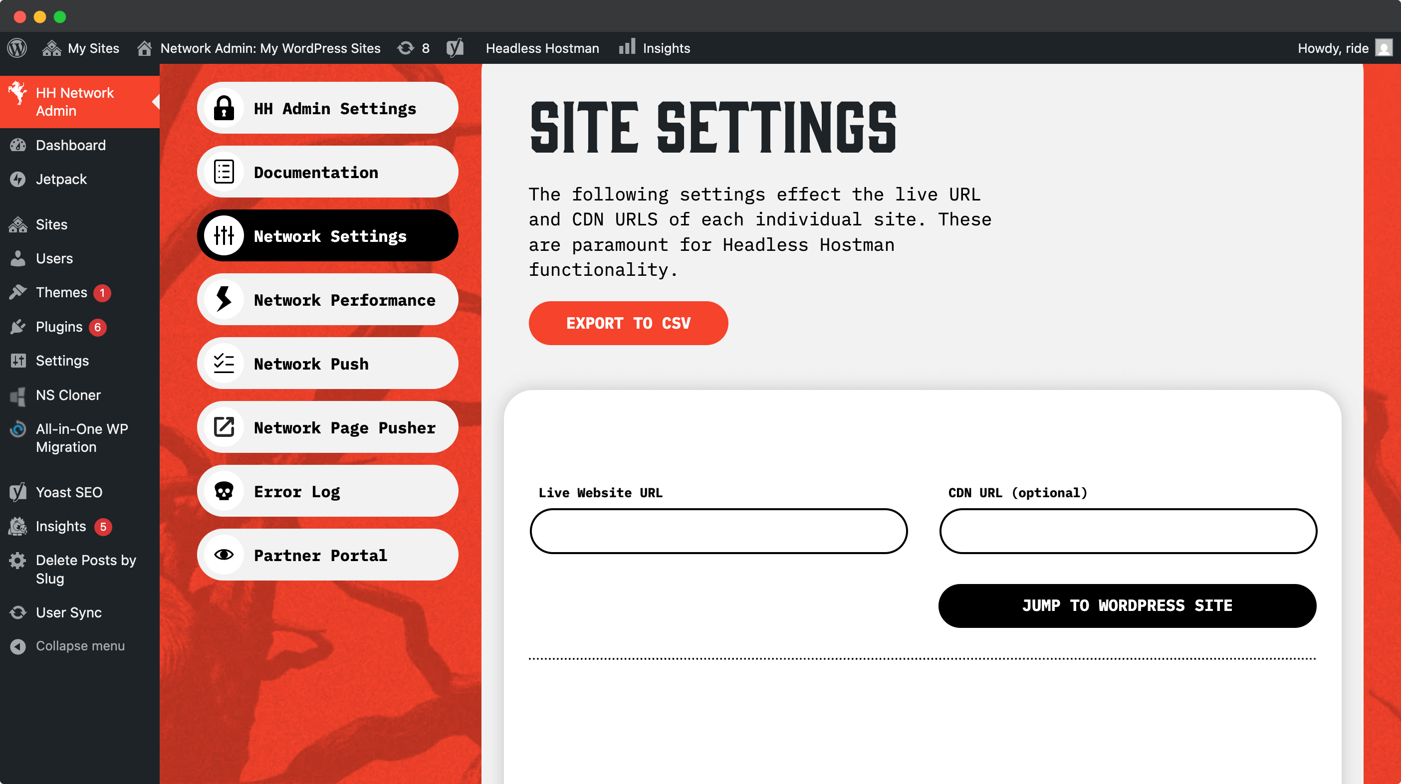 All of our normal functionality exists on the sub-site level — just like it would be for any normal, non-Multisite instance.
